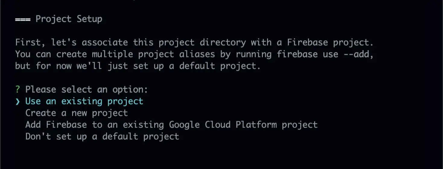 If you have opted to start without creating a Firebase project, make sure to add a default project to your .firebaserc file, even if it is non-existent yet.