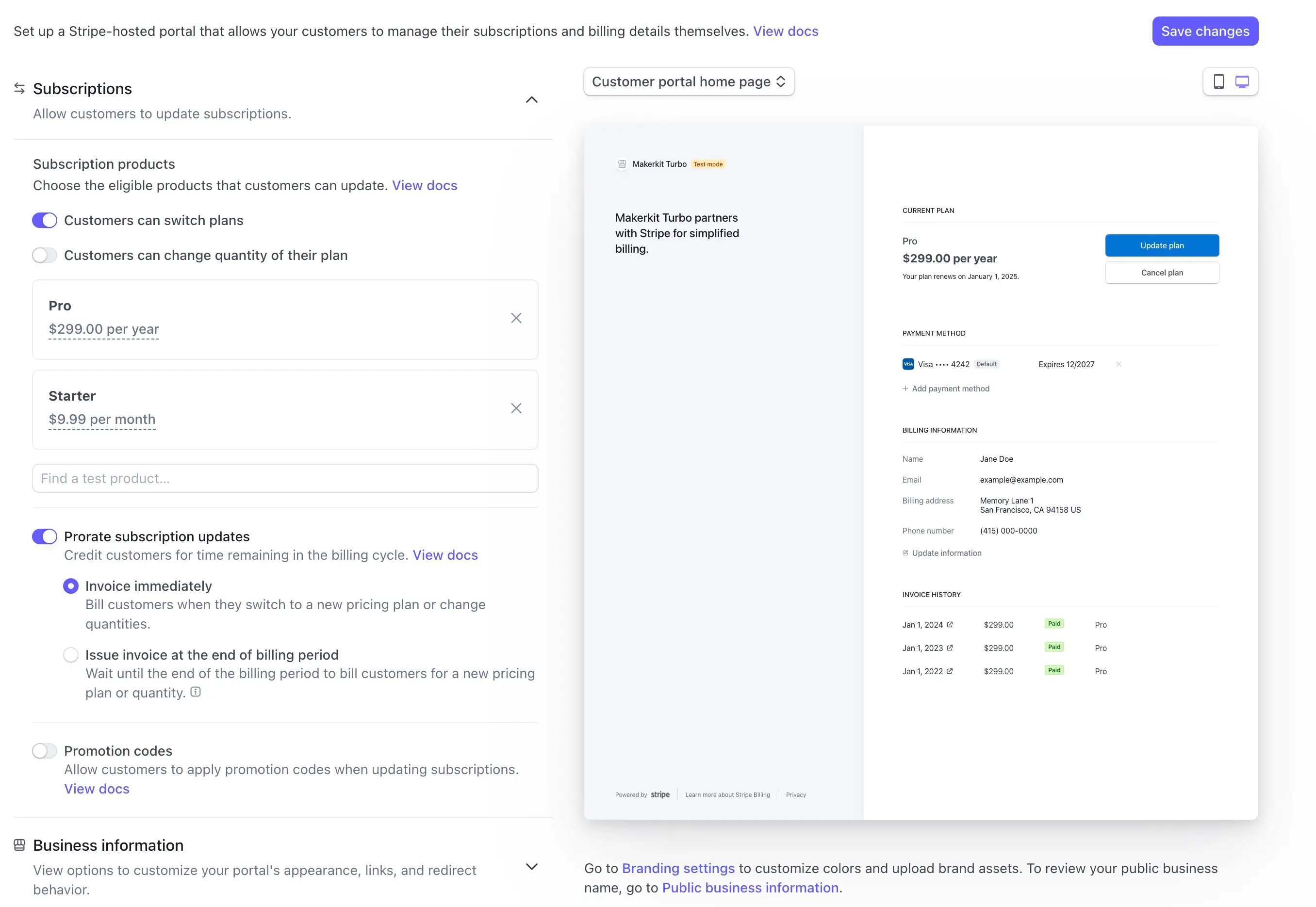 - Go to Stripe Dashboard → Settings → Billing → Customer portal