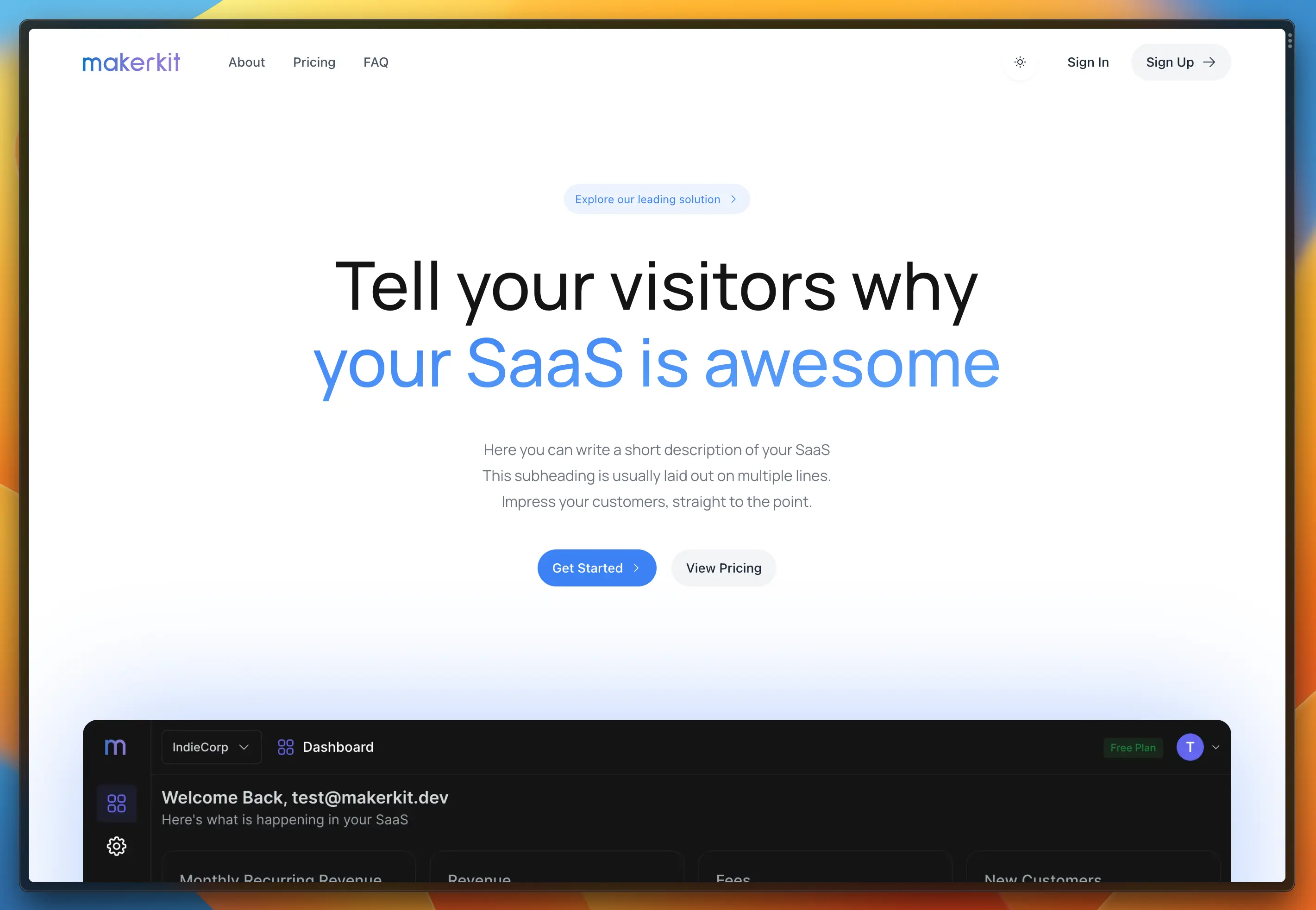Once updated, the Makerkit's theme will automatically adapt to your new color palette! For example, below, we set the primary color to colors.blue: