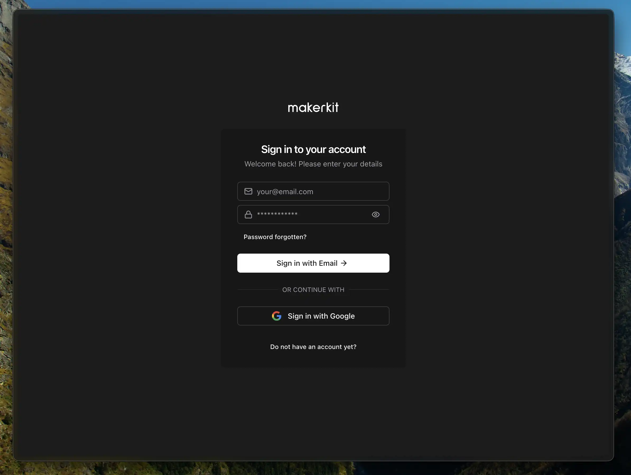 Configure sign-in methods by setting environment variables. The pre-built forms adapt automatically to show email/password, magic links, OAuth providers, and MFA challenges.