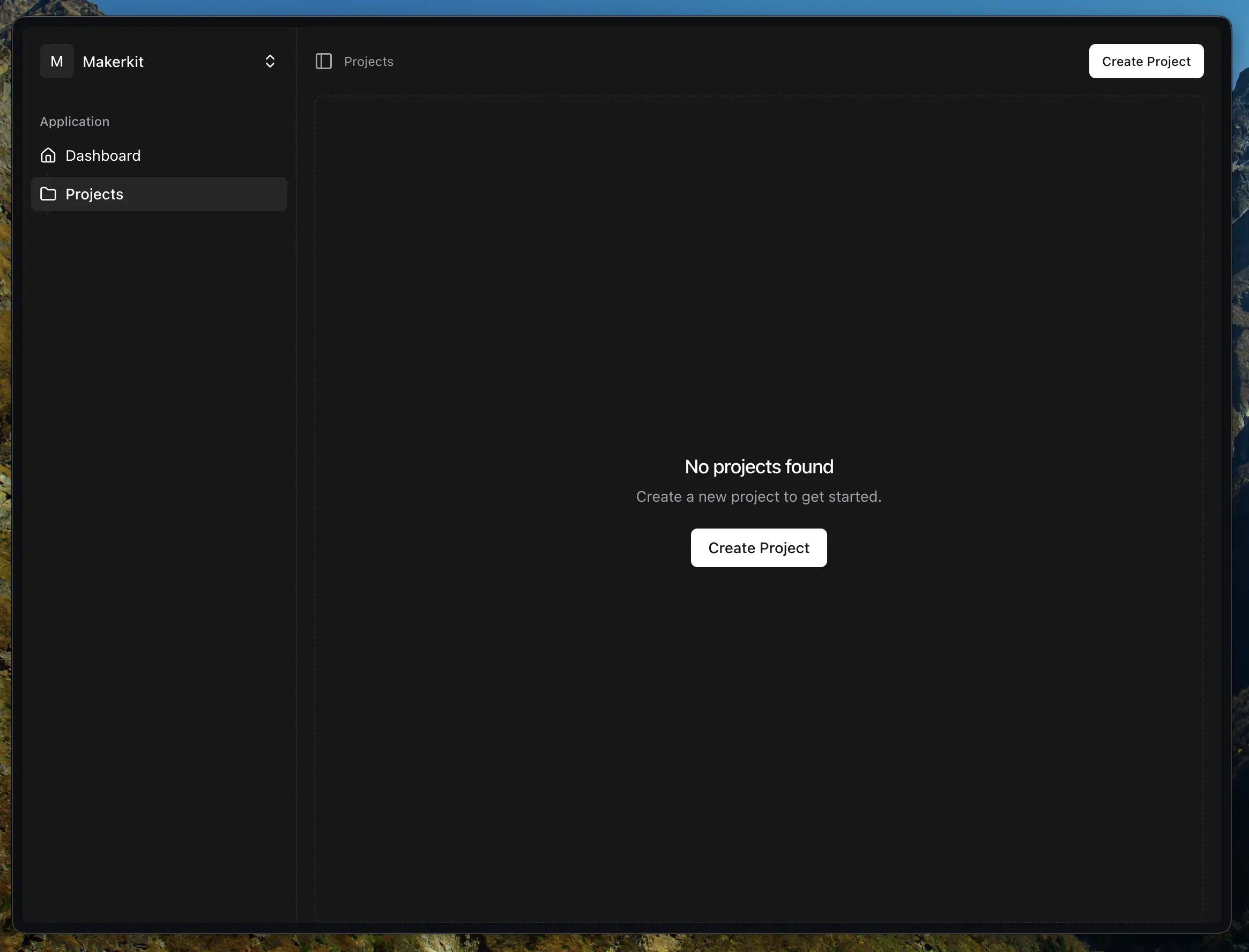 As you can see, as we don't currently have any projects, the empty state is displayed. Let's create a new project by clicking the "Create Project" button in the sheet: