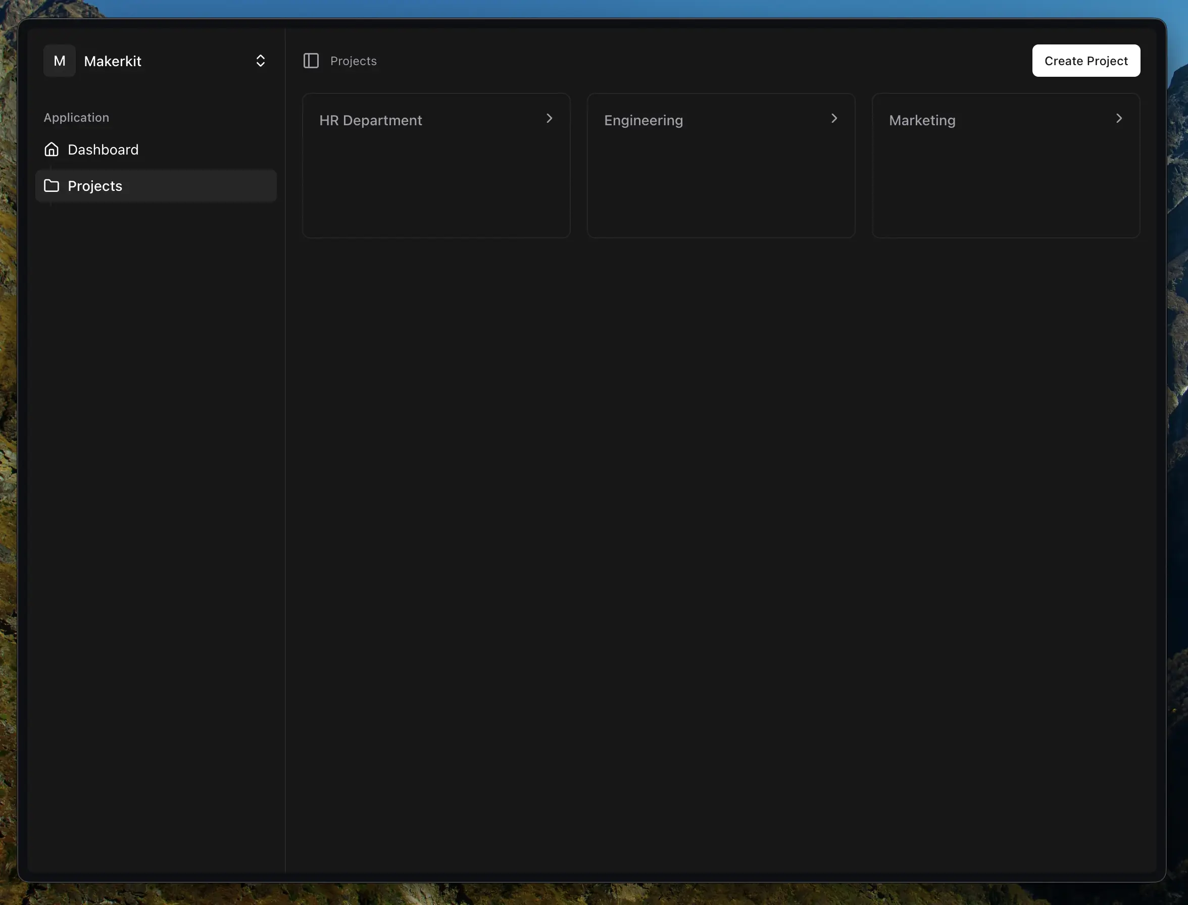 Tip: it's a good practice to use separate components for the form, and for the container that wraps the form (be this, a Dialog, AlertDialog, Sheet, etc.). This will make your code more readable and maintainable, and will instantiate the form component only when needed (e.g., when the user clicks the "Create Project" button in the header).