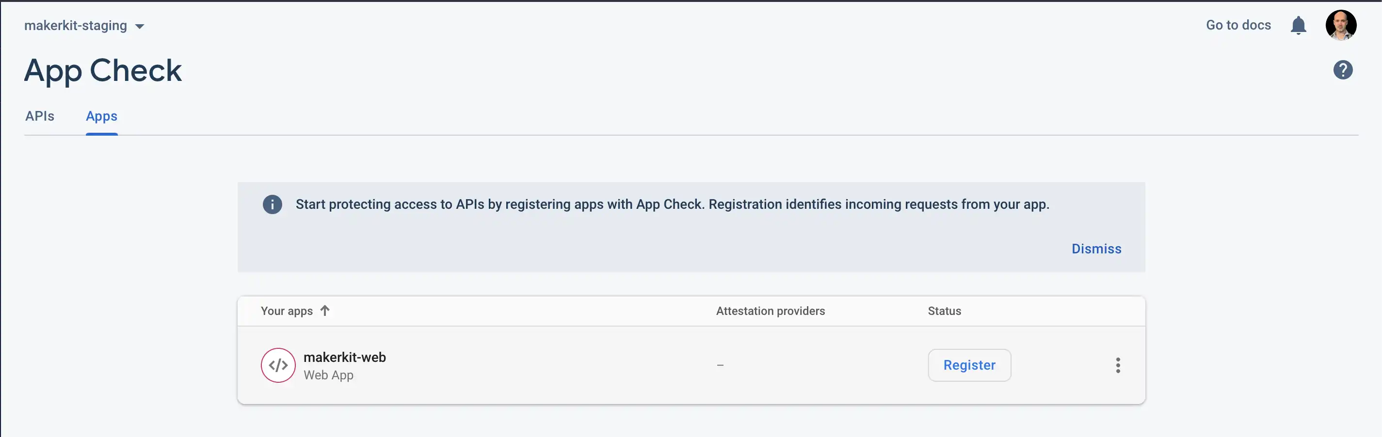 The Makerkit SaaS starter is already configured to secure your application with Firebase AppCheck, but you will need to set it up in the Firebase Console first.