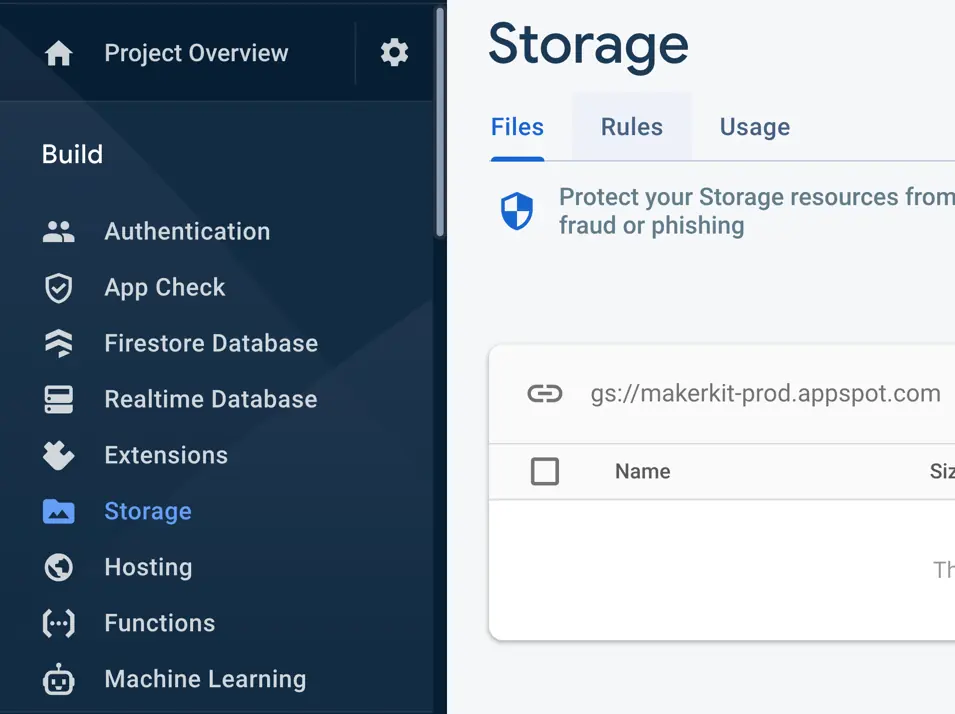 From the main sidebar, click on "Storage". Afterward, click on the "Rules" tab: